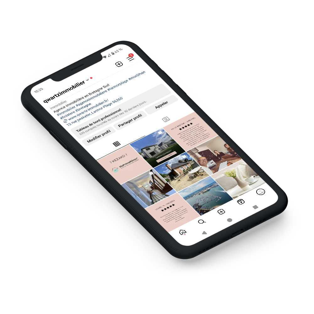 Il nous a alors demandé de l'accompagner dans la gestion de son compte Facebook et Instagram. Nous avons alors déterminé les axes de communication pour l'agence : nouvelles annonces, biens vendus, conseils sur l'immobilier, avis client, info locale…